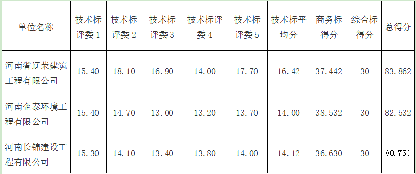 第一中标候选人:河南省辽荣建筑工程有限公司